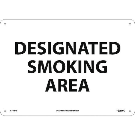 NMC M102AB No Smoking Sign, Legend "DESIGNATED SMOKING AREA", 14" Length x 10" Height, Aluminum 0.040, Black on White