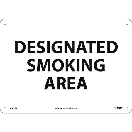 NMC M102RB No Smoking Sign, "DESIGNATED SMOKING AREA", 14" Width x 10" Height, Rigid Plastic, Black On White