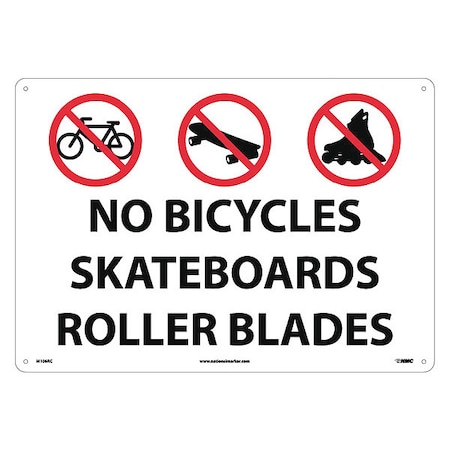 NMC M106RC Security Sign with Graphic, Legend "NO BICYCLES SKATEBOARDS ROLLERBLADES", 20" Length x 14" Height, Rigid Plastic, Black/Red on White