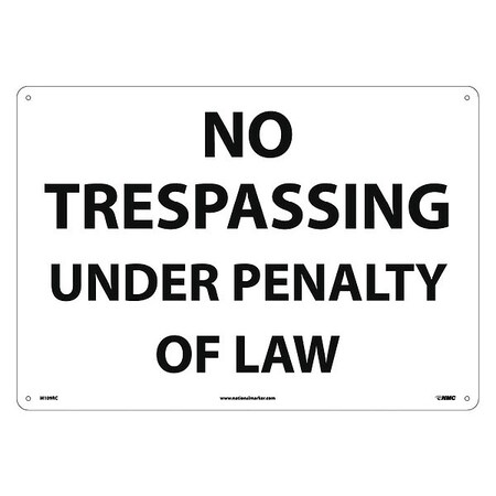 NMC M109RC NO TRESPASSING UNDER PENALTY OF LAW Sign - 20 in. x 14 in., Rigid Plastic Admittance Security Sign with Black Text on White Base