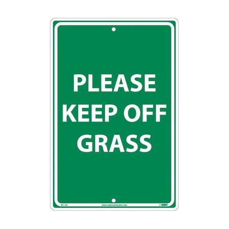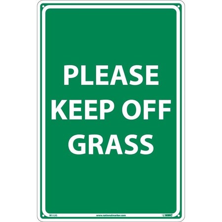 NMC M112G Security Sign, Legend "PLEASE KEEP OFF GRASS", 12" Length x 18" Height, Aluminum 0.040, White On Green, White on Green