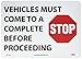 - Legend "VEHICLES MUST COME TO A COMPLETE STOP BEFORE PROCEEDING"