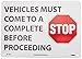 - Legend "VEHICLES MUST COME TO A COMPLETE STOP BEFORE PROCEEDING"