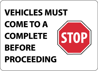 Vehicles Must Come To A Complete Stop Before Proceeding Sign, M117RB