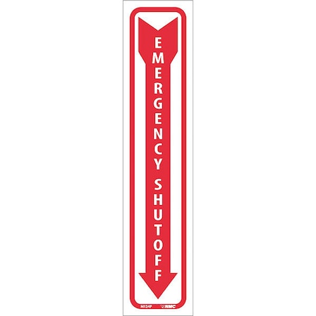 NMC M124P Fire Sign, Legend "EMERGENCY SHUT OFF", 4" Length x 18" Height, Pressure Sensitive Vinyl, Red on White