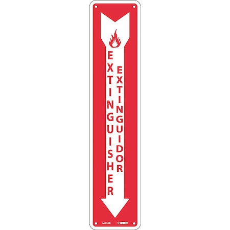 NMC M126R Bilingual Fire Sign with Graphic, Legend "EXTINGUISHER", 4" Length x 18" Height, Rigid Plastic, Red on White