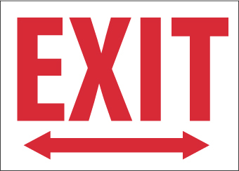 - Specifications: the rectangular vinyl exit sign is 0.004 in. thick, 14 in. wide and 10 in. high. It features red text on white base, giving better visibility. The sign is graffiti proof and resistant to UV and chemicals