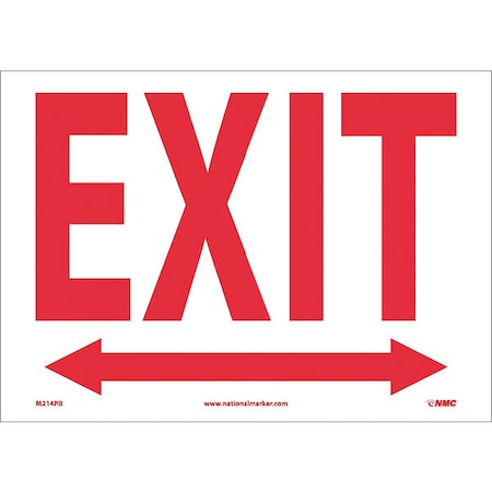 NMC M214PB Fire Sign with Double Sided Arrow, Legend "EXIT", 14" Length x 10" Height, Pressure Sensitive Vinyl, Red on White