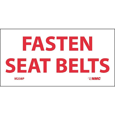 NMC M238P Fire Sign, Legend "FASTEN SEAT BELTS", 4" Length x 2" Height, Pressure Sensitive Vinyl, Red on White