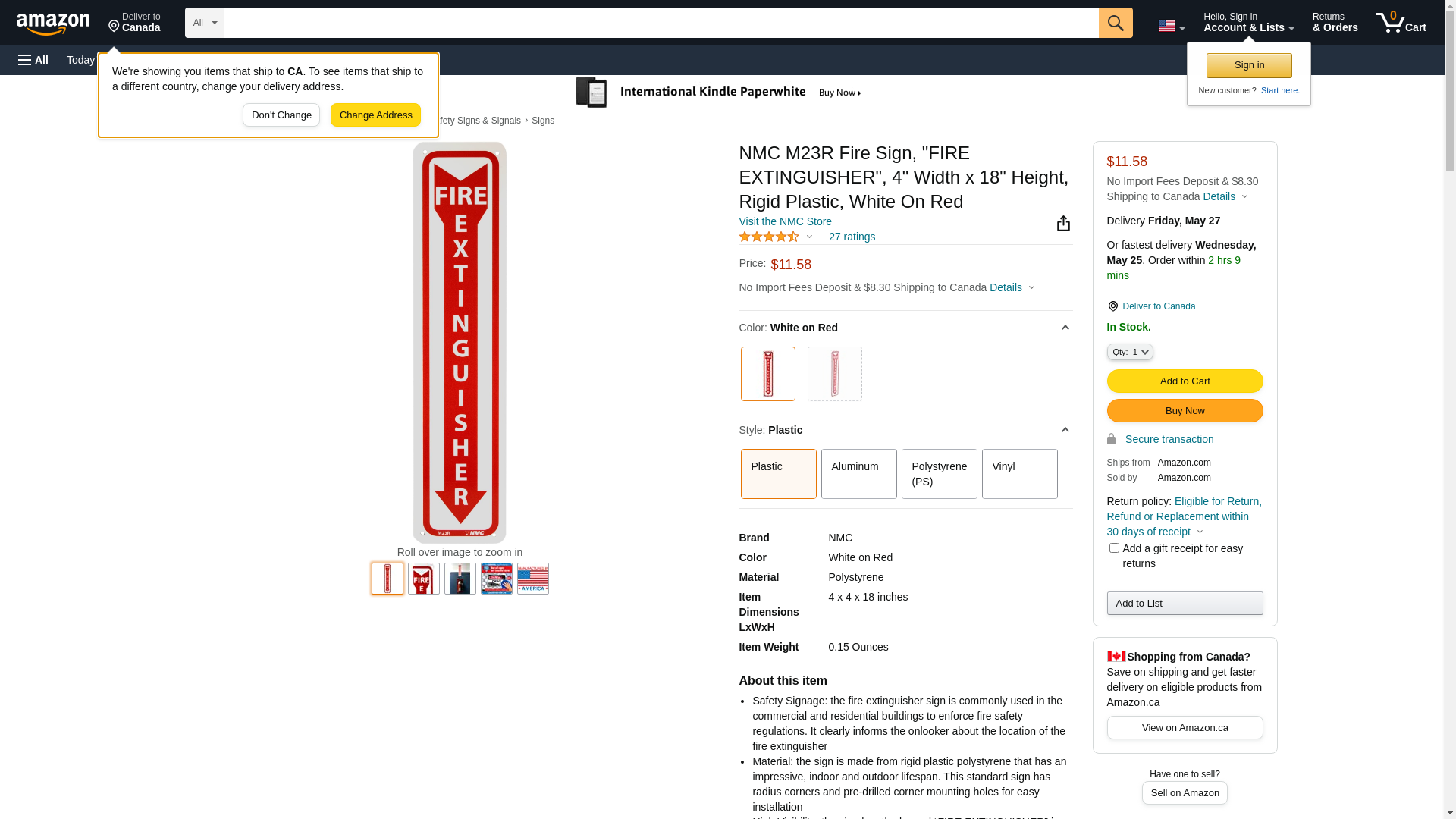M23R - Fire Extinguisher, 18" X 4", .050" Rigid Plastic