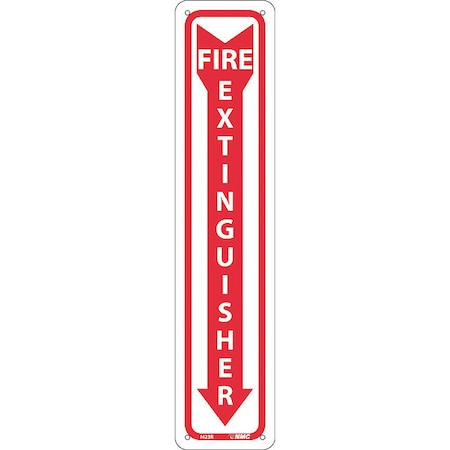 NMC M23R Fire Sign, "FIRE EXTINGUISHER", 4" Width x 18" Height, Rigid Plastic, White On Red