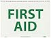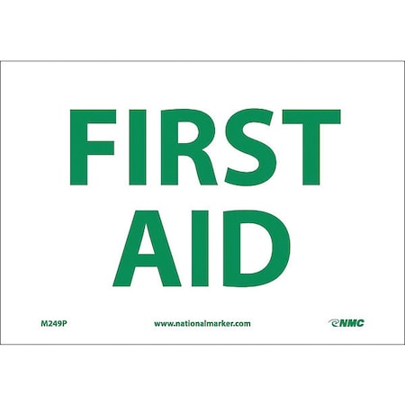 NMC M249P Exit/Entrance Sign, Legend "FIRST AID", 10" Length x 7" Height, Pressure Sensitive Vinyl, Green on White