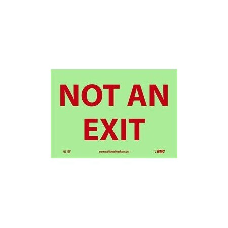 NMC M27RB Safety Sign, "NOT AN EXIT", 14" Width x 10" Height, Rigid Plastic, Red on White
