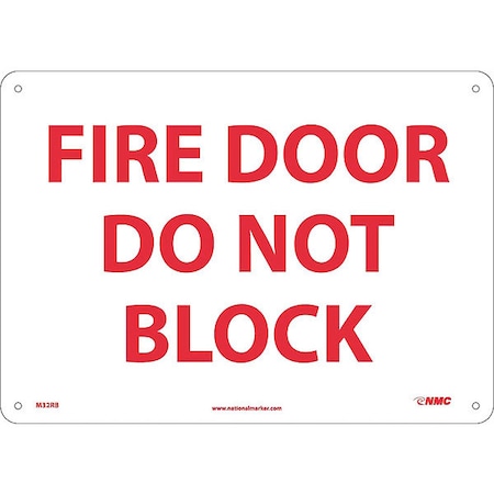 NMC M32RB Fire Sign, Legend "FIRE DOOR DO NOT BLOCK", 14" Length x 10" Height, Rigid Plastic, Red on White