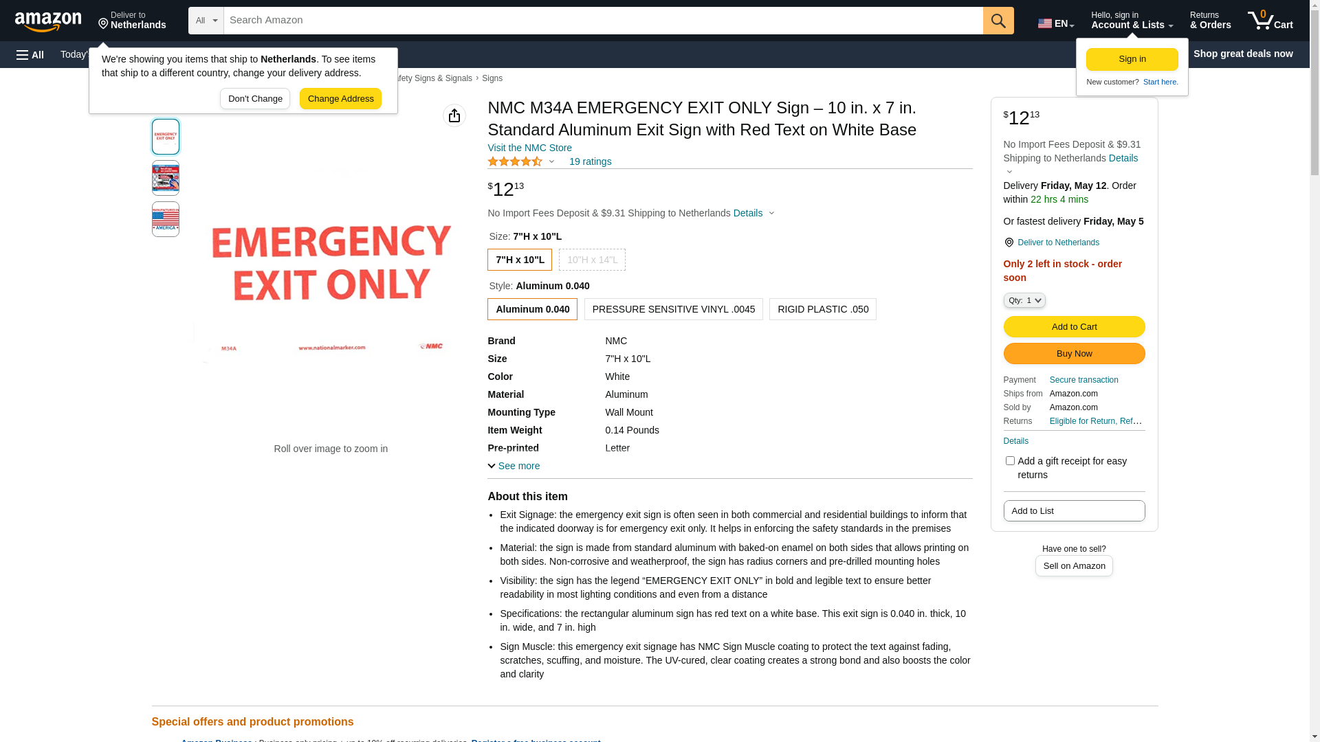 - Specifications: the rectangular aluminum sign has red text on a white base. This exit sign is 0.040 in. thick, 10 in. wide, and 7 in. high