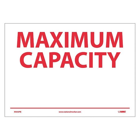 NMC M355PB Restricted Area Sign, Legend "MAXIMUM CAPACITY", 14" Length x 10" Height, Pressure Sensitive Vinyl, Red on White
