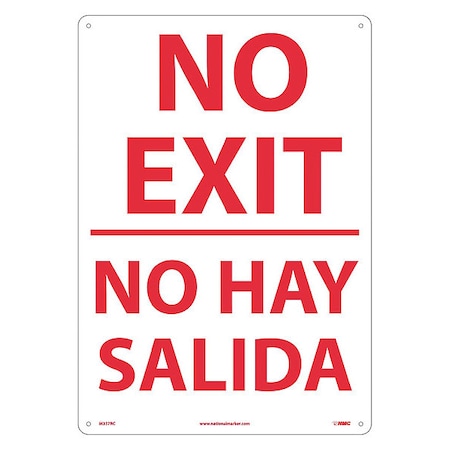 NMC M357RC Bilingual Restricted Area Sign, Legend "NO EXIT", 14" Length x 20" Height, Rigid Plastic, Red on White
