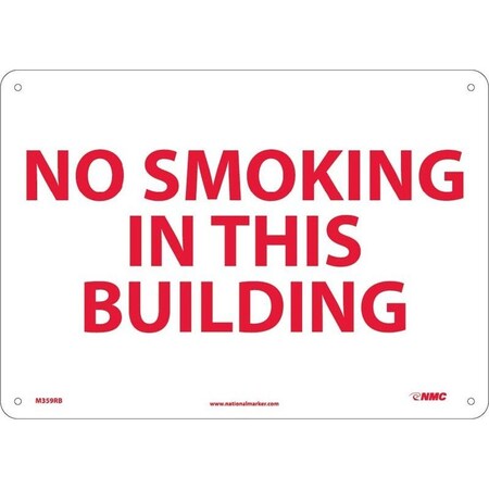 NMC M359RB NO SMOKING IN THIS BUILDING Sign - 14 in. x 10 in. Rigid Plastic Smoking Prohibition Sign with Red Text on White Base