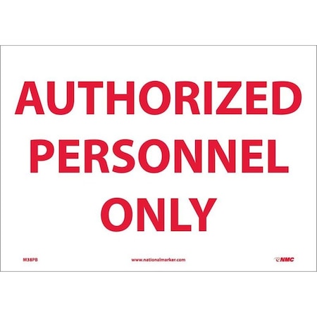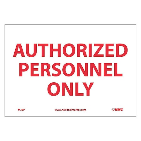 NMC M38P AUTHORIZED PERSONNEL ONLY Sign - 10 in. x 7 in. PS Vinyl Admittance Sign with Red Text on White Base. Safety Sign