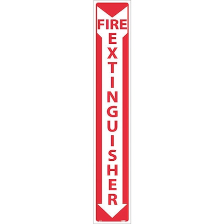 NMC M39P Restricted Area Sign, "FIRE EXTINGUISHER", 4" Width x 24" Height, Pressure Sensitive Vinyl, Red on White