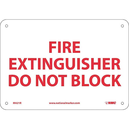 NMC M421R Restricted Area Sign, Legend "FIRE EXTINGUISHER DO NOT BLOCK", 10" Length x 7" Height, Rigid Polystyrene Plastic, Red on White