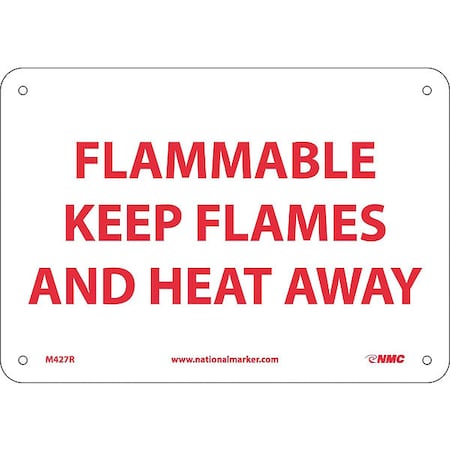 NMC M427R Restricted Area Sign, Legend "FLAMMABLE KEEP FLAMES AND HEAT AWAY", 10" Length x 7" Height, Rigid Polystyrene Plastic, Red on White
