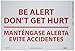 - Legend "Be Alert Don't Get Hurt Mantengase Alerta Evite Accidentes"