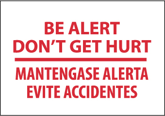 - Legend "Be Alert Don't Get Hurt Mantengase Alerta Evite Accidentes"