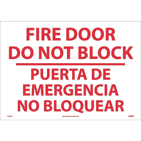 NMC M436PC Bilingual Restricted Area Sign, Legend "FIRE DOOR DO NOT BLOCK", 20" Length x 14" Height, Pressure Sensitive Vinyl, Red on White