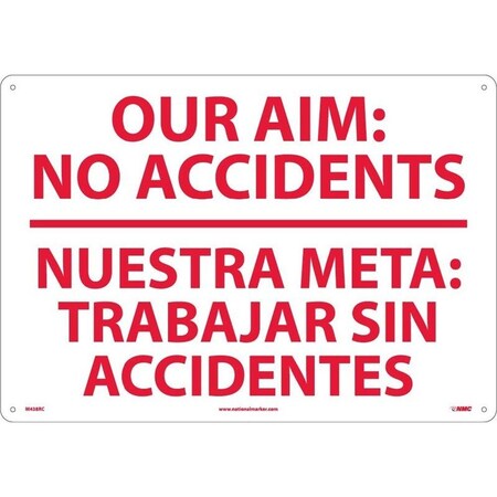 NMC M438RB Bilingual Restricted Area Sign, Legend "OUR AIM: NO ACCIDENTS", 14" Length x 10" Height, Rigid Polystyrene Plastic, Red on White