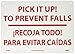 NMC M439RB Bilingual Restricted Area Sign, Legend "PICK IT UP! TO PREVENT FALLS", 14" Length x 10" Height, Rigid Polystyrene Plastic, Red on White