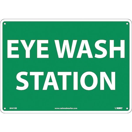 NMC M441RB Emergency and First Aid Sign, "EYE WASH STATION", 14" Width x 10" Height, Rigid Plastic, White On Green