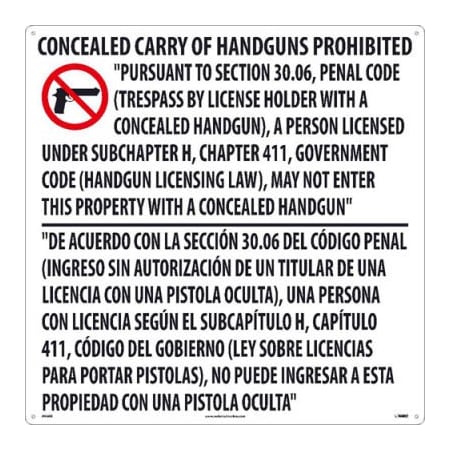 NMC National Marker M460R 24 inches X 24 inches, Texas Concealed Handgun Prohibited Sign.050 Rigid Plastic