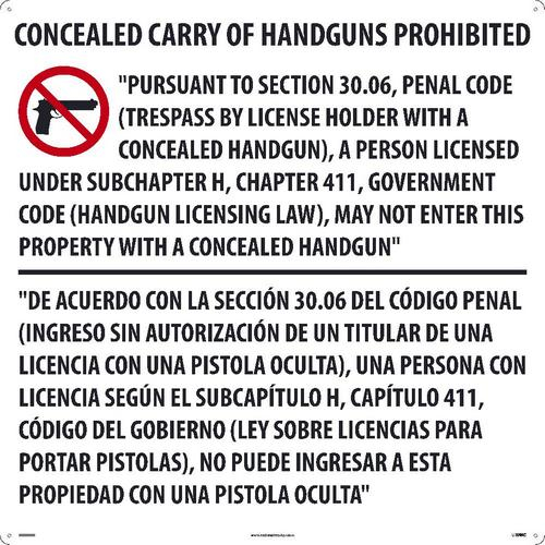 NMC National Marker M460V 24 inches X 24 inches, Texas Concealed Handgun Prohibited Sign, Clear Vinyl