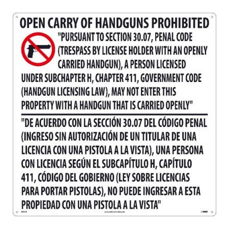 NMC National Marker M461R Te inches Xas Open Carry Handgun Prohibited Sign,24 inches X 24 inches, Rigid Plastic