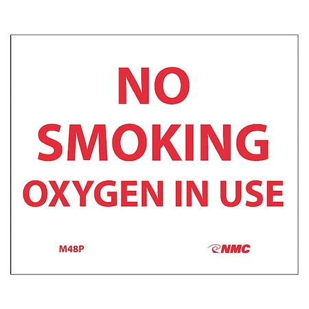 NMC M48P NO SMOKING - OXYGEN IN USE Sign - 6 in. x 5 in. Pressure Sensitive Vinyl Sign with Red Text on White Base, 1 Count (Pack of 1)