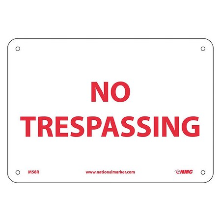 NMC M58R NO TRESPASSING Sign - 10 in. x 7 in., Rigid Plastic Admittance Security Sign with Red Text on White Base