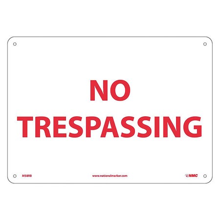 NMC M58RB NO TRESPASSING Sign - 14 in. x 10 in., Rigid Plastic Admittance Security Sign with Red Text on White Base
