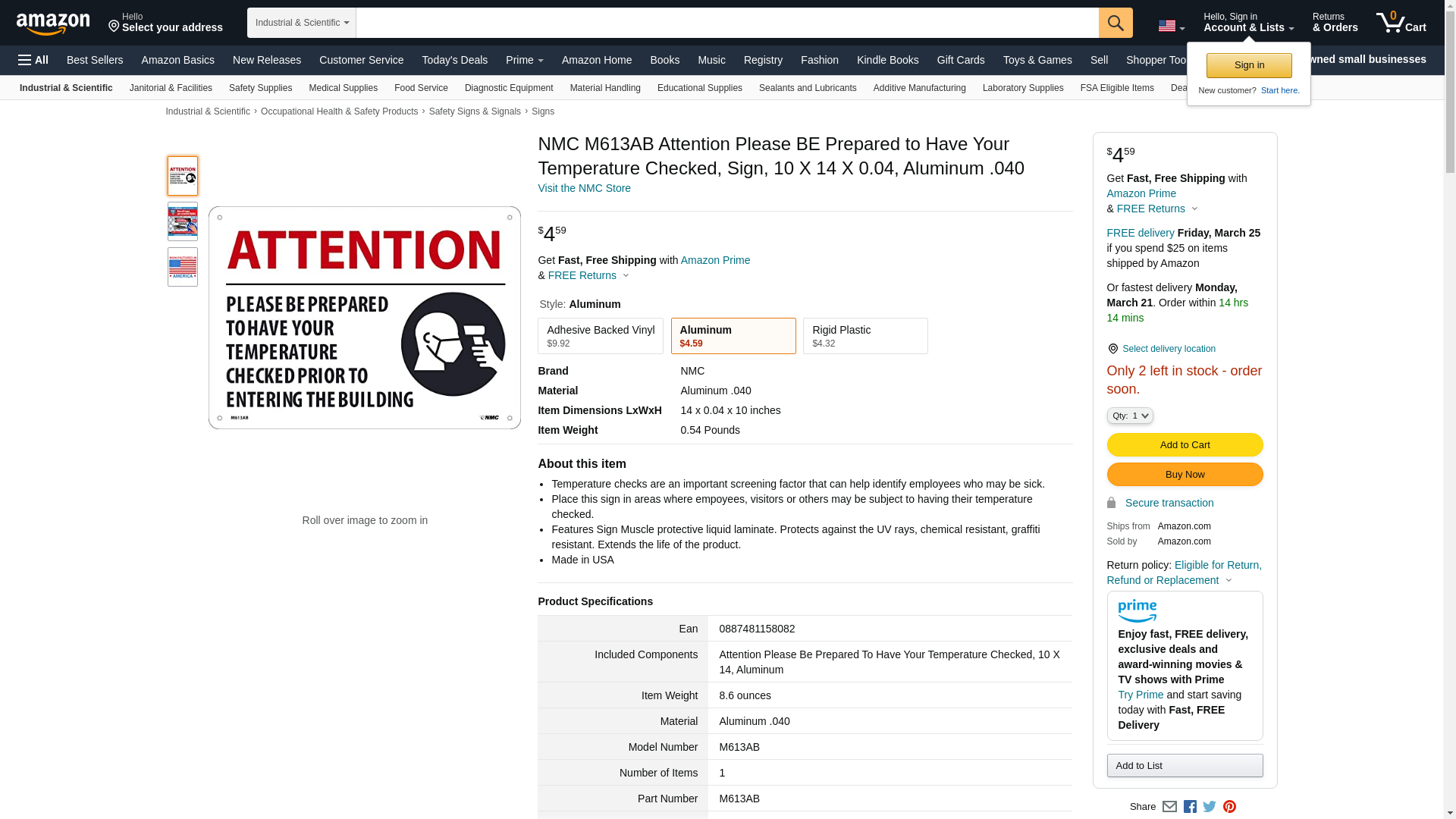 Order M613AB by NMC "Attention Temperature Check Prior To Entry" Sign - US Mega Store