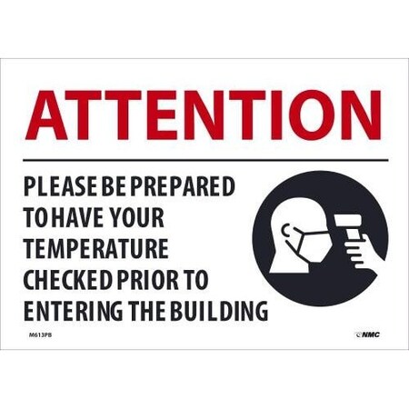 NMC M613PB Attention Please BE Prepared to Have Your Temperature Checked, Sign, 10 X 14 X 0.005, Pressure Sensitive Vinyl .0045