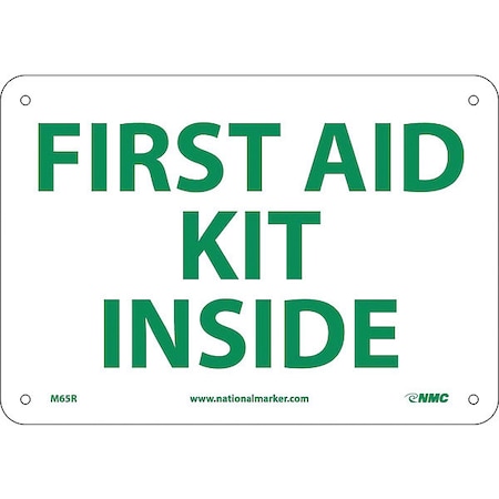 NMC M65R Emergency and First Aid, Legend "FIRST AID KIT INSIDE", 10" Length x 7" Height, Rigid Polystyrene Plastic, Green on White