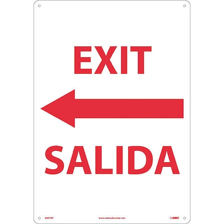NMC M697RC Bilingual Exit/Entrance Sign, Legend "EXIT" with Graphic, 14" Length x 20" Height, Rigid Polystyrene Plastic, Red on White