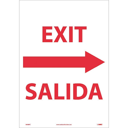 NMC M698PC Bilingual Exit/Entrance Sign, Legend "EXIT" with Graphic, 14" Length x 20" Height, Pressure Sensitive Vinyl, Red on White