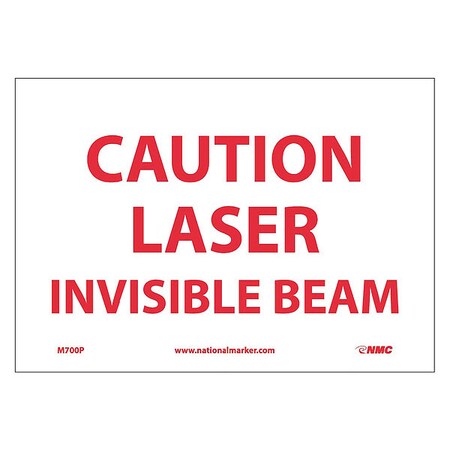 NMC M700P Radiation Sign, Legend "CAUTION - LASER INVISIBLE BEAM", 10" Length x 7" Height, Pressure Sensitive Vinyl, Red on White