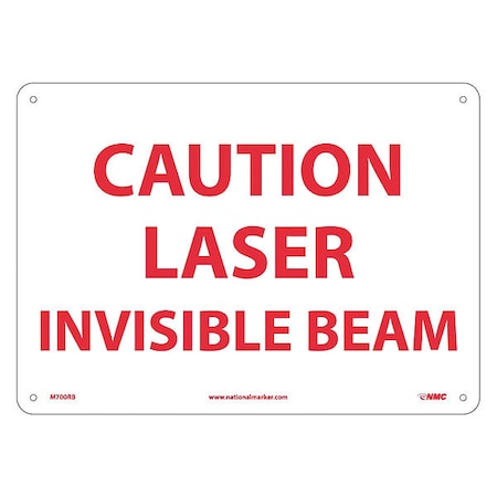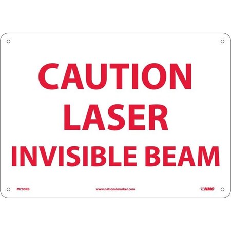 NMC M700RB Radiation Sign, Legend "CAUTION - LASER INVISIBLE BEAM", 14" Length x 10" Height, Rigid Polystyrene Plastic, Red on White