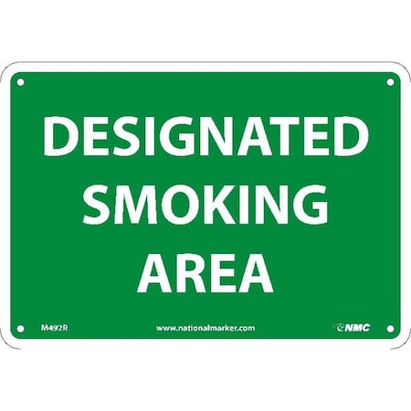 NMC M701RB No Smoking Sign, "DESIGNATED SMOKING AREA", 14" Width x 10" Height, Rigid Plastic, Red On White