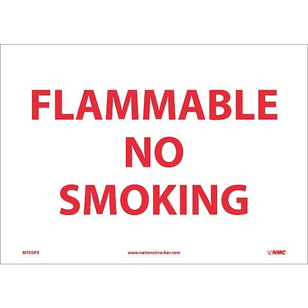 NMC M702PB FLAMMABLE - NO SMOKING Sign – 14 in. x 10 in. Pressure Sensitive Vinyl Safety Sign with Red Text on White Base
