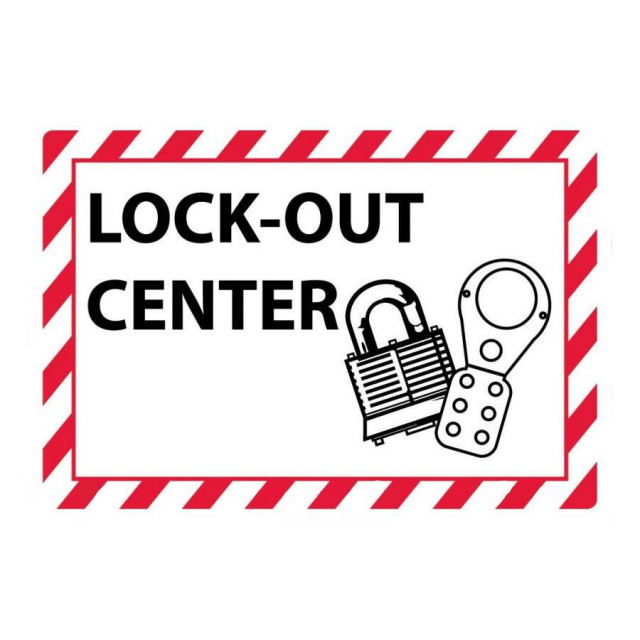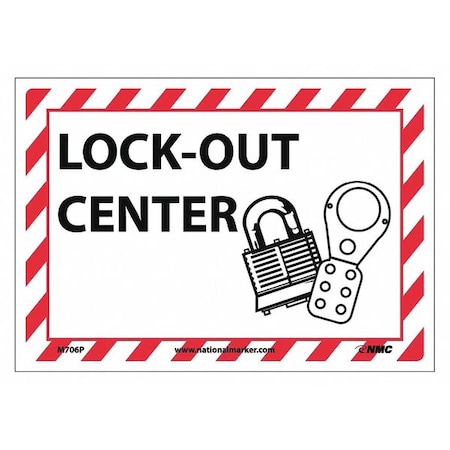NMC M706P Lockout-Tagout Center, Pressure Sensitive Vinyl, 7" Height, 10" Length, Red/Black on White