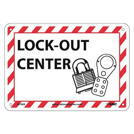 NMC M706R Lockout-Tagout Center, Rigid Polystyrene Plastic, 7" Height, 10" Length, Red/Black on White