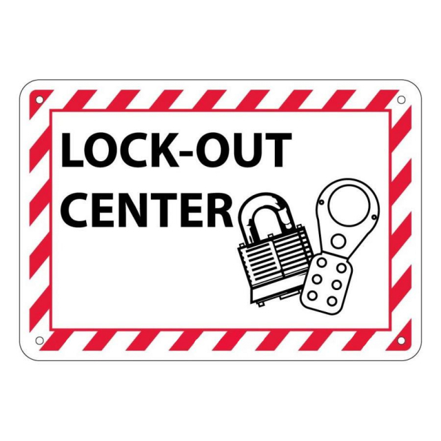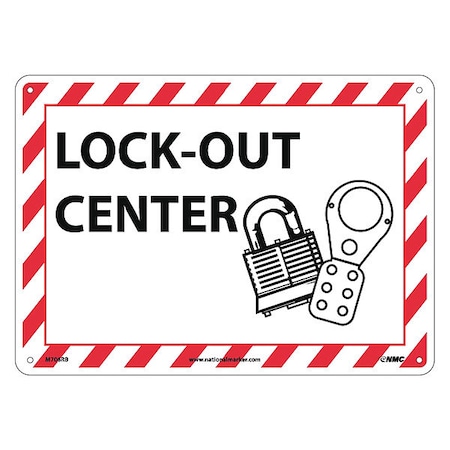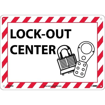 NMC M706RB Lockout-Tagout Center, Rigid Polystyrene Plastic, 10" Height, 14" Length, Red/Black on White